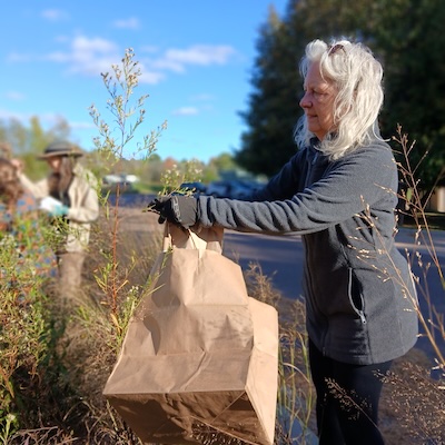 • Craig Waddell and Vicky Bergvall have been working with local Girl Scouts at Kestner Park as they remove mugwort and plant daffodils rescued from WOK’s native garden.